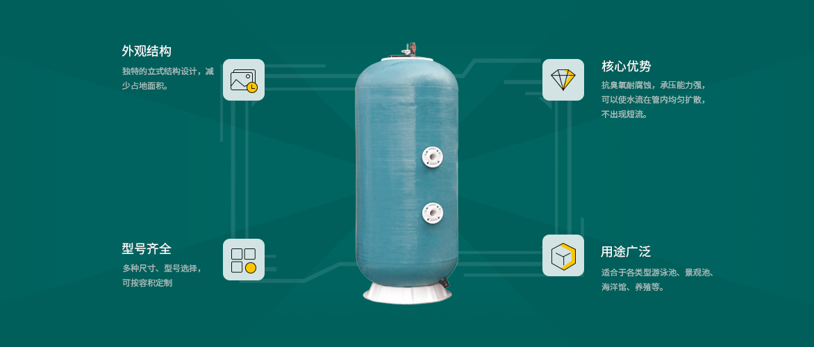 AQUA愛克泳池設(shè)備旗下的臭氧反應(yīng)缸抗臭氧耐腐蝕,承壓能力強,可以使水流在管內(nèi)均勻擴散,不出現(xiàn)短流。