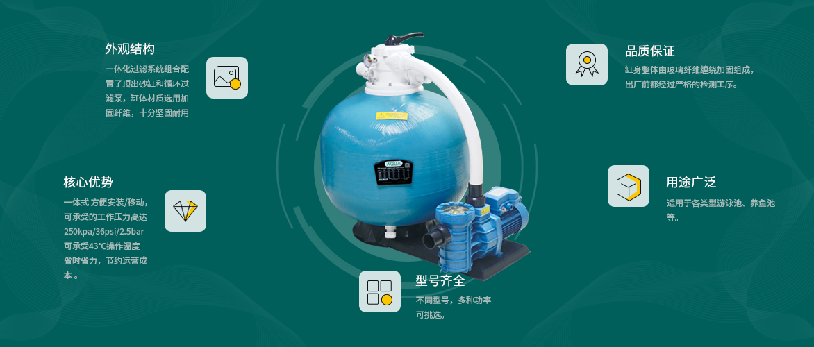 一套高效率過濾組合,輕松解決泳池、魚池循環(huán)過濾難題。