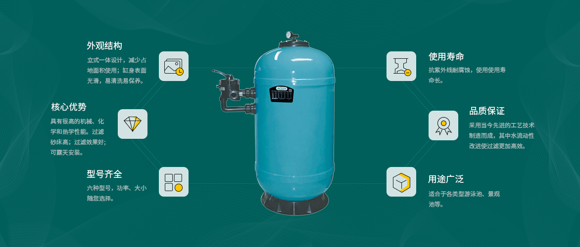 AQUA愛克泳池設備旗下的光面深層砂缸過濾效果很好。