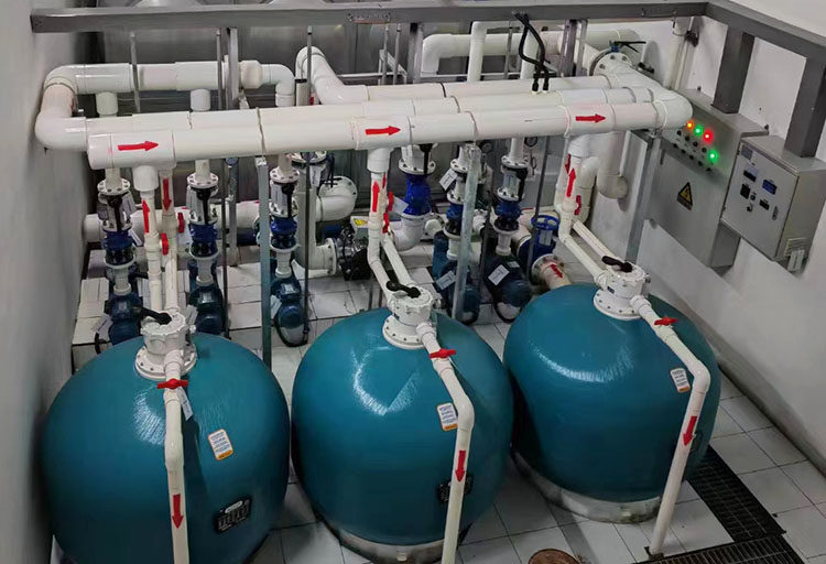 深圳某高檔小區泳池循環過濾設備安裝的是AQUA愛克泳池水泵過濾砂缸,泳池恒溫除濕設備安裝的是AQUA愛克空氣源泳池恒溫熱泵三集一體恒溫除濕熱泵