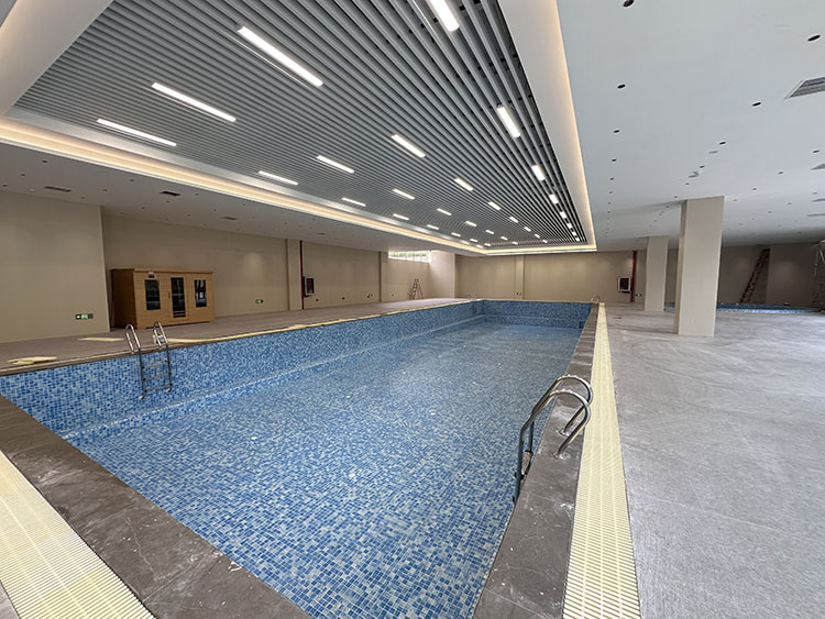 值得關注的是,除濕系統則以三集一體除濕熱泵為核心,整合了除濕、空調、池水加熱功能,可快速排除泳池水汽,維持室內濕度在50%~60%的舒適區間,有效避免潮濕導致的墻面霉變、設備腐蝕等問題。若泳池使用該設備后,可確保室內空氣保持干爽,用戶體驗顯著提升。